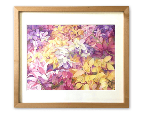 "Marie's Bouquet" is a 12x16 signed, original painted in transparent watercolor on 140# cold press paper. It is professionally matted and framed with uv protective acrylic.